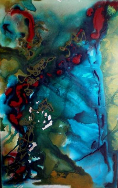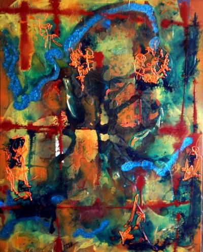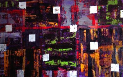 original painting created for Niecy Nash "flower power" as seen in In Touch Magazine spread on her home